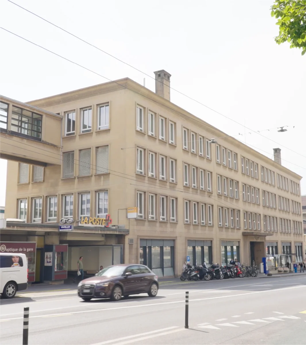Ce bâtiment de 1908 des CFF est intégralement conservé, transformé (activité publique) et mis en valeur.
